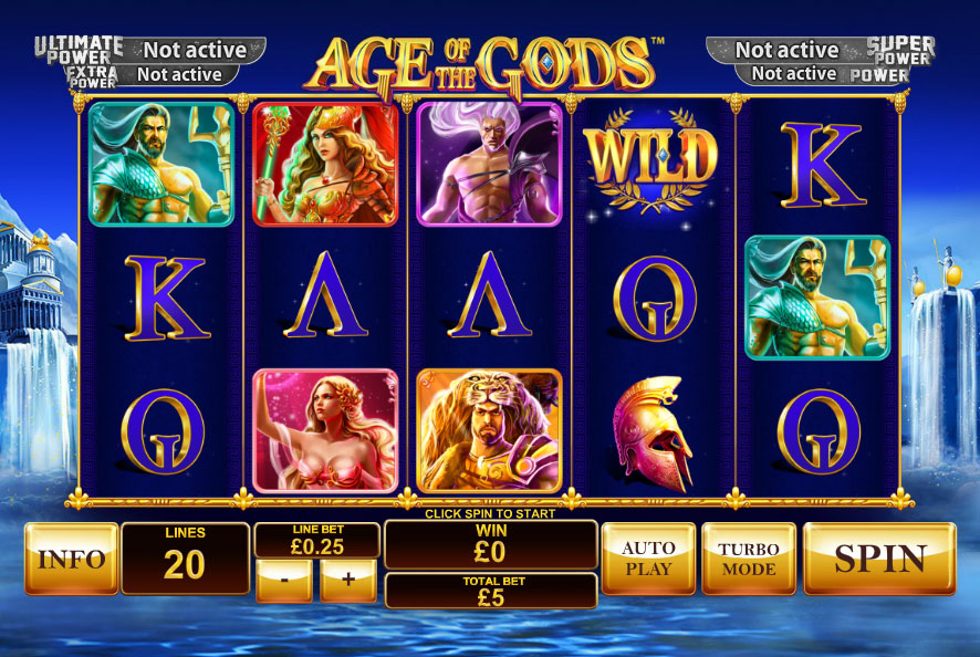 Age of the Gods is a Playtech progressive jackpot video slot game featuring 5 Reels and 20 Paylines with a variety of exciting bonus game which include Free spins, Increasing Multipliers and Expanding Wilds.
